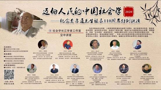 2020512日,由社会学长江学者工作室和做爱视频社会学与公共管理学院共同举办的“2020年社会学长江学者工作室空中讲堂迈向人民的中国社会学——纪念费孝通先生诞辰110周年特别讲演活动正式开始。该活动采用“空中讲堂”的独特形式,于每周二和周四的下午16:0018:00开讲,持续至2020616日。