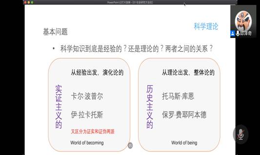 其次,邱泽奇教授就科学知识是到底是经验的?还是理论的?两者之间的关系等问题从实证主义和历史主义的两个方面来进行阐述。同时与同学们深入探讨了库恩的范式定义并引导大家重新理解了范式。