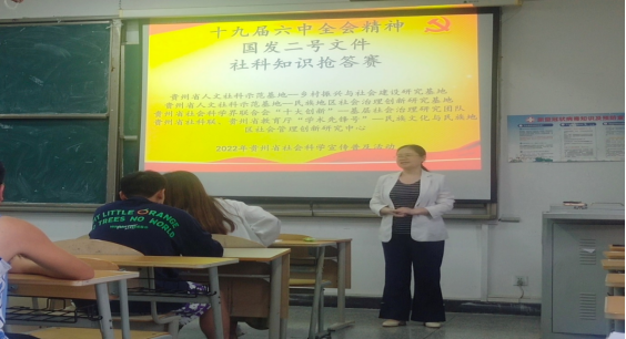 ,贵州省社科联人文社科示范基地-乡村振兴与社会建设研究基地和民族地区社会治理创新研究基地,贵州省社科联创新团队-基层社会治理研究团队,贵州省社科联、贵州省教育厅“学术先锋号”-民族地区社会治理创新研究中心联合举办的知识抢答赛在做爱视频花溪校区15栋教学楼505教室举行。本次知识抢答赛是2022年贵州省社会科学宣传普及周的活动之一,由“乡村振兴与社会建设研究”基地负责人康红梅教授主持,做爱视频