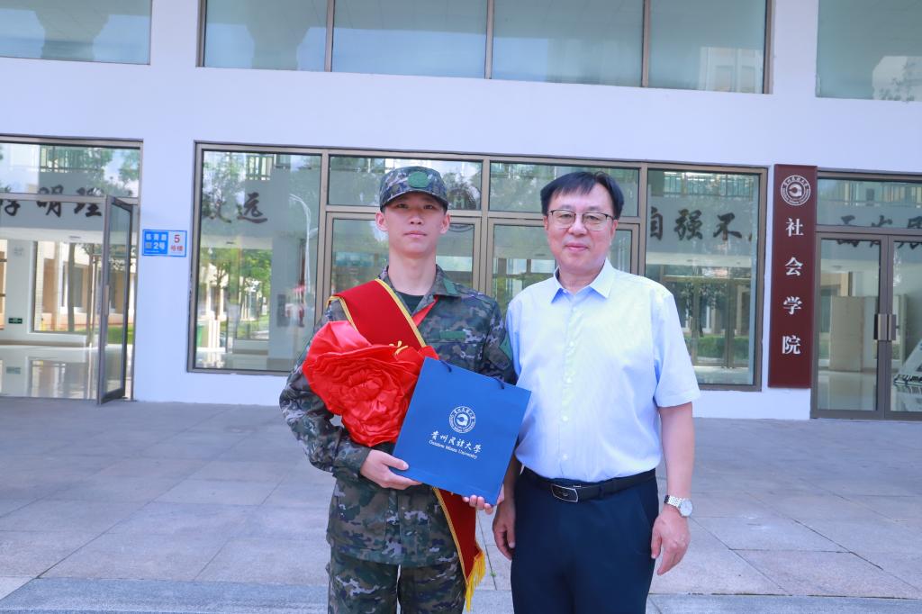 仪式上,包院长代表学院全体师生向入伍学生表达了最诚挚的祝福。他希望入伍学子段易在军营中服从命令,听从指挥,发扬不怕苦、不怕累的精神,做到迎难而上、激流勇进、勇当先锋,力争早日在部队中建功立业,用青春书写无悔的人生篇章。随后为入伍学子赠送纪念品,希望这富有意义的礼物能陪伴段易同学未来的军旅生活,时刻铭记母校的关怀与期望。