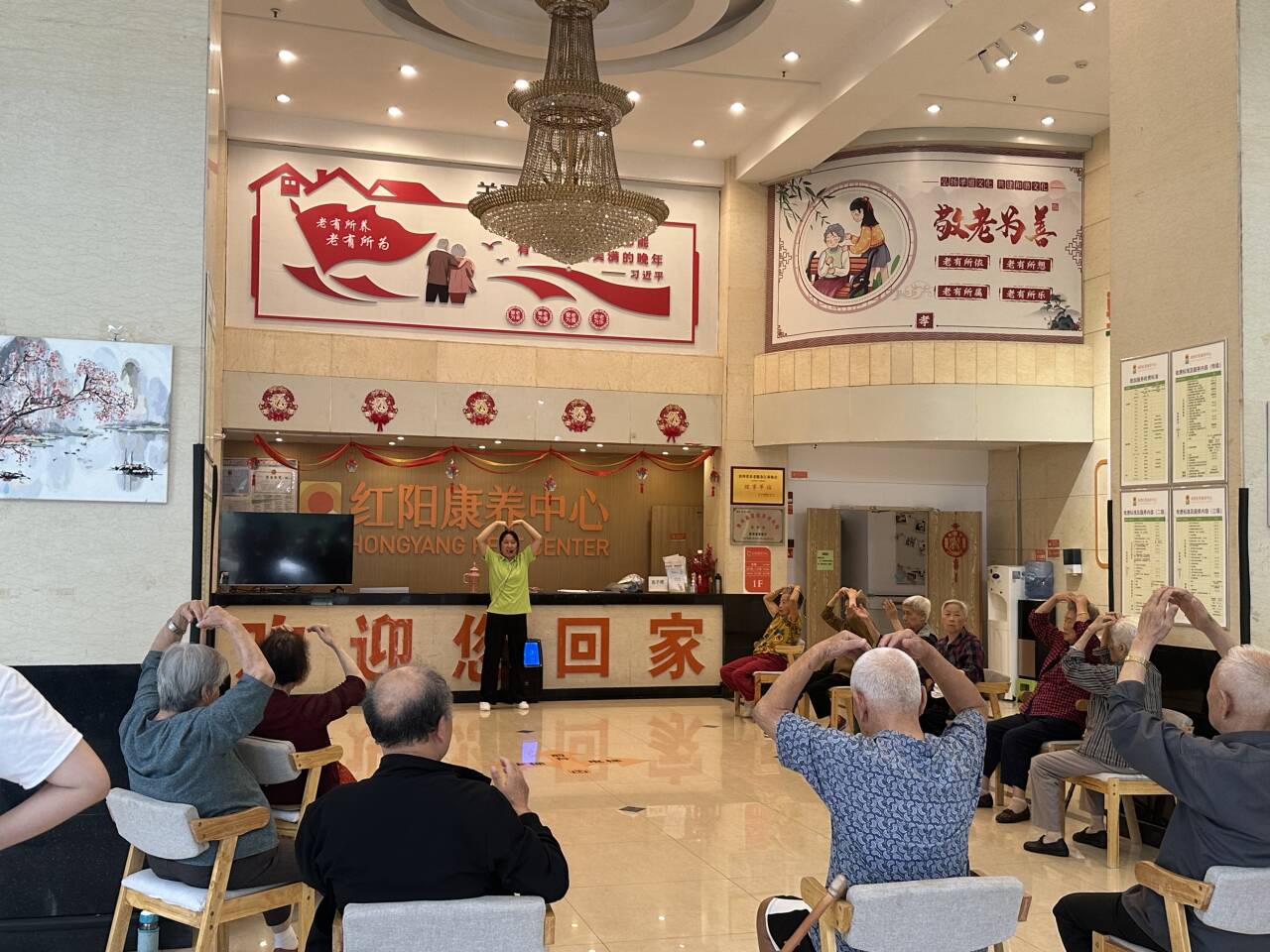图2 康复师带领老人做手势操活动现场