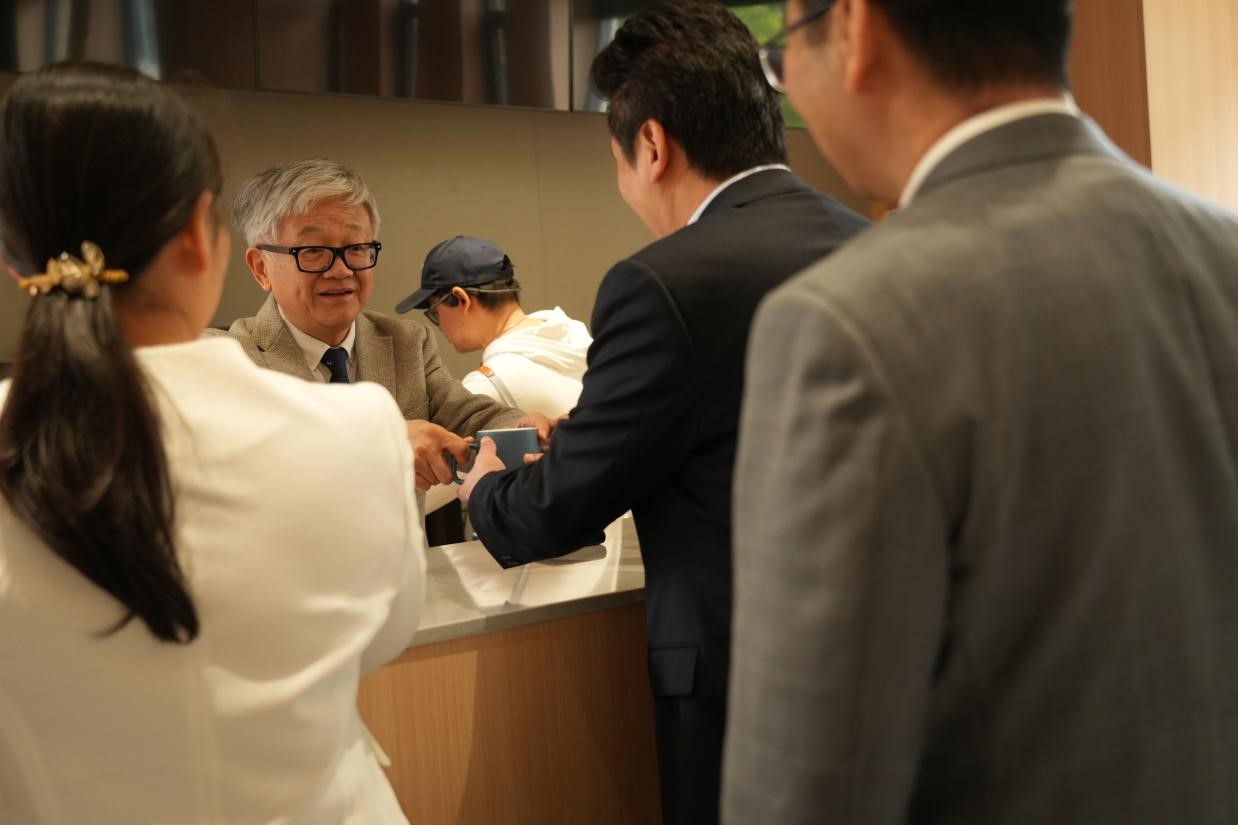 专家们和领导们移步至群学咖啡灯箱两侧,为“群学咖啡厅”揭牌。